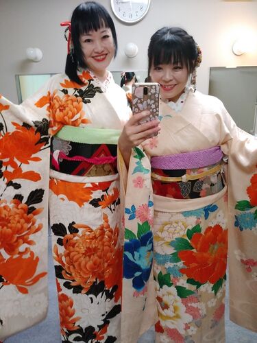 夕べは琴duoでパーティウェルカム演奏でした。 インドのゲストをお招きしたパーティ。インドといえば色とりどりのサリーが華やかなイメージなので、私たちの衣装も色鮮やかさを重視して選んでみました。 私のお着物は抜けるような青空色の振袖です。 メイン…